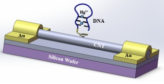 碳材料,如碳纳米管、石墨烯等,具有良好的导电性,基于上述材料结合微电子学工艺制备出微纳器件,基于微纳器件通过化学修饰连接生物分子,通过电学信号的变化,实现对生物分子高灵敏的检测,从而在医学、环境、食品安全等领域进行应用,对体外蛋白质或细胞等表面的膜蛋白的功能进行研究,揭示生物学现象,阐明相关作用机制。