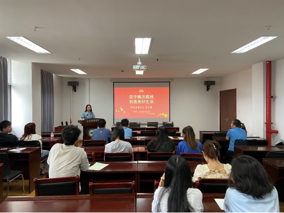 6月16日,院党委副书记张文娟在耒耜大楼F609会议室讲授题为“坚守廉洁底线 创造美好生活”专题党课。全体毕业生党员参加学习。