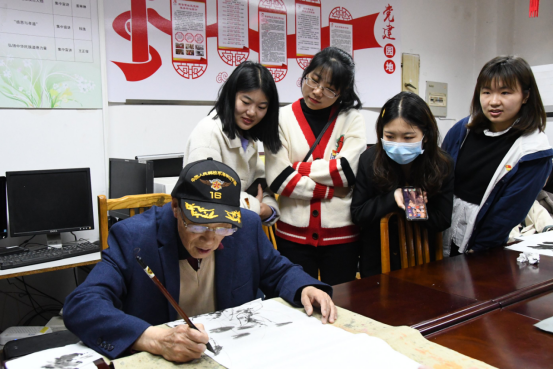 4月22日上午,太阳成研究生党支部党员在老师带领下,一行来到位于京口区宋官营社区的老年书画社,在翰墨飘香中聆听退休老党员们讲述红色故事,在文润清廉中传承红色基因。