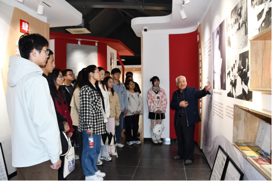 在诗歌馆创始人沈晓昆馆长的带领下,学生党员们参观了展馆内的珍贵文献资料和历史照片。沈馆长详细介绍了著名诗人闻捷曾在西北、新疆等地工作生活的人生经历和创作历程。“闻捷同志用诗歌记录了新中国发展的重要历程,他的作品充满对祖国的深情和对人民的热爱。”沈馆长向党员们展示了馆内收藏的闻捷手稿、书信及出版物等珍贵实物,生动还原了这位革命诗人的创作轨迹。