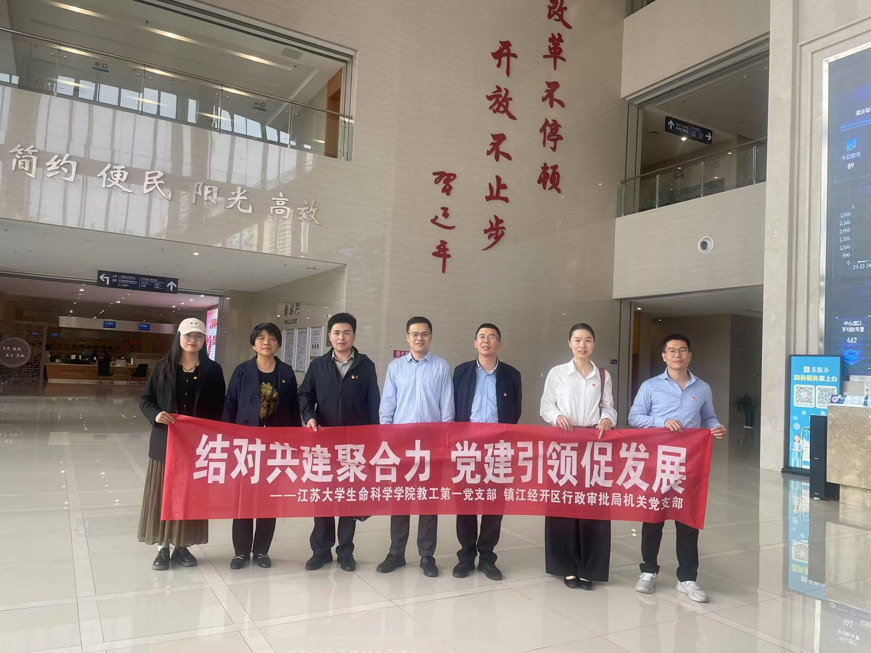 此次活动旨在加强基层党组织的交流与合作,提升党建工作水平,促进党建与业务的深度融合。活动中,首先大家通过实地走访,共同参观了位于圌心大厦的镇江新区行政服务中心,详细了解中心的职能配置、服务模式及工作流程。参观过程中,双方党员对如何提升服务效能、优化行政审批流程等方面进行了深入交流,表示要将党建工作与业务发展紧密结合,进一步发挥党组织的战斗堡垒作用。