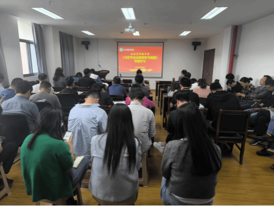教工第一党支部书记周阳主持学习,他强调了法治教育的重要性,并鼓励全体教职工认真学习《纲要》,将法治思想融入日常教学和科研工作中,并从习近平法治思想的形成背景、核心要义、实践要求等方面进行了阐述。