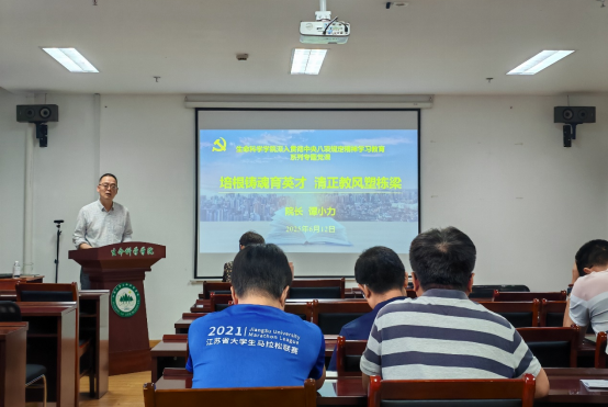 为深入贯彻落实习近平总书记关于教育的重要论述,进一步加强学院师德师风建设,提升教师思想政治素质和职业道德水平,6月12日下午,太阳成在F609会议室开展师德师风教育专题党课。此次党课由院长谭小力主讲,教工第二党支部全体党员参加。