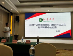 应中国微生物高技术产业联盟合成生物学会议组委会邀请,太阳成陈华友研究员、冯勇博士、郭忠健副研究员参加了6月13日-15日在杭州举办的“新常态下合成生物学技术创新与发酵工程新技术发展趋势交流研讨会”。陈华友研究员作了题为“木质纤维素降解酶改造高通量筛选及应用”的报告,冯勇博士作了题为“底物广谱性葡萄糖氧化酶的开发及在秸秆降解中的应用”的报告。