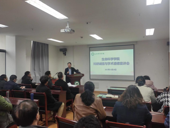 会上,分管副院长苏兆亮对学校的科研诚信与学术道德相关文件和政策进行了宣讲,着重强调了论文发表前的登记制度,坚决杜绝学术不端行为。他指出,要加强面向学生的科研诚信与学术道德宣传和把关,让学生养成良好的科研习惯与作风。