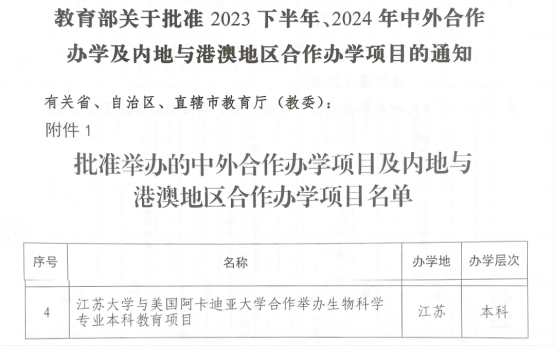 近日,教育部公布2025年经审核的中外合作办学机构和项目名单中,以太阳成集团tyc33455cc官网为培养主体的“太阳成集团tyc33455cc官网与美国阿卡迪亚大学合作举办生物科学专业本科教育项目”正式获批。
